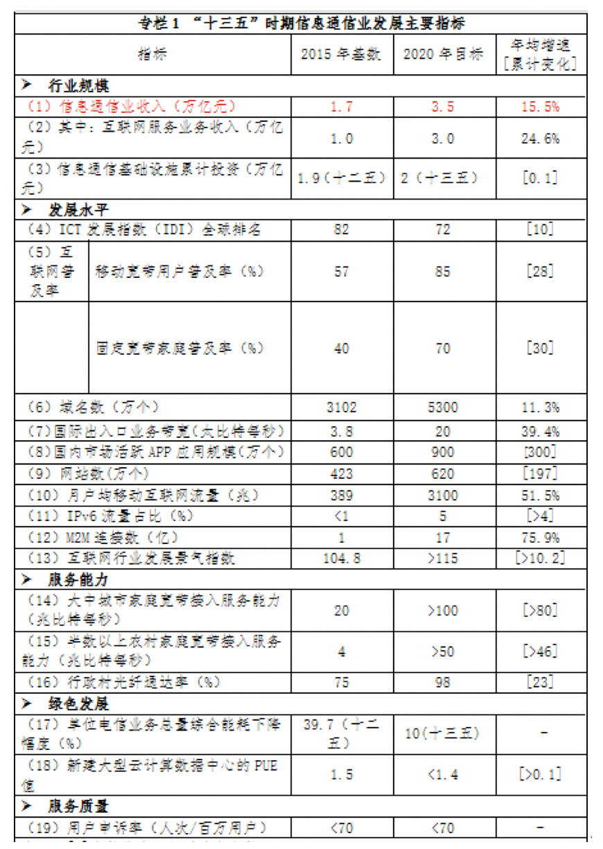 二、我国信息通信产业十三五发展目标:5G启动商用服务,产业收入达3.5万亿
