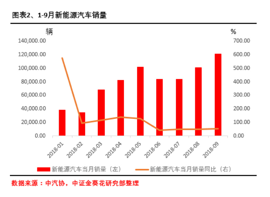 与此形成鲜明对比的是新能源汽车销量持续高增长,9月销售12.1万辆,年内累计71.49万辆,当月同比增长55.13%,增速平稳。