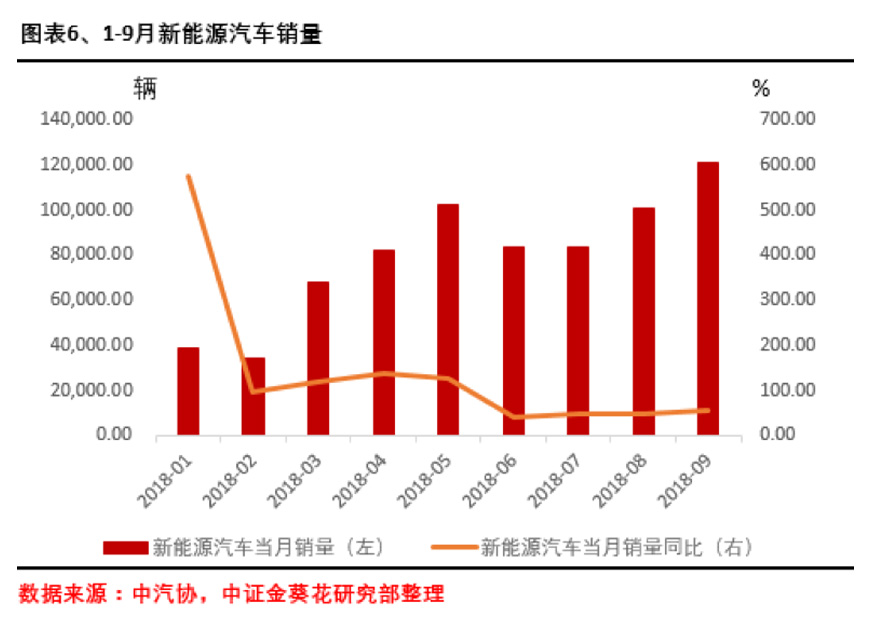 而新能源汽车方面,销售辆自今年6月补贴新政短暂调整后开始发力,总量创年内新高,增速保持稳中有升。并且新能源汽车销量占汽车总销量虽然绝对数上仍较小,但相对占比处在上升通道。