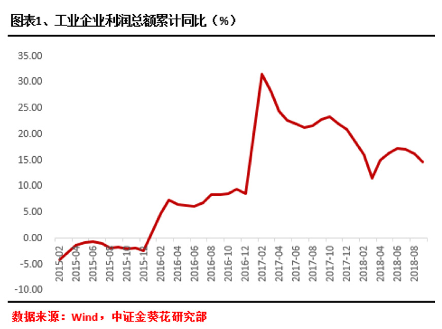 10月27日国家统计局公布的企业财务数据显示,前三季度,全国规模以上工业企业利润同比增长14.7%,比1-8月同比增速小幅下滑1.5个百分点,这跟9月工业增加值从6.1%降至5.8%基本一致,跟GDP从上半年的6.7%小幅将至前三季度6.5%也基本一致,总体上来看,保持了稳中有缓的趋势。