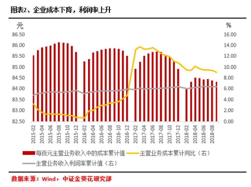 可以看到,今年以来企业主营业务成本在逐渐下降,而且利润率也保持平稳增长。那么为什么今年以来企业利润总额增速却稳中有将呢,推测主要原因在于需求端的疲软,消费仍需通过减税降费,提高居民消费能力等措施打开下游市场,刺激消费,从而带动企业利润上涨。