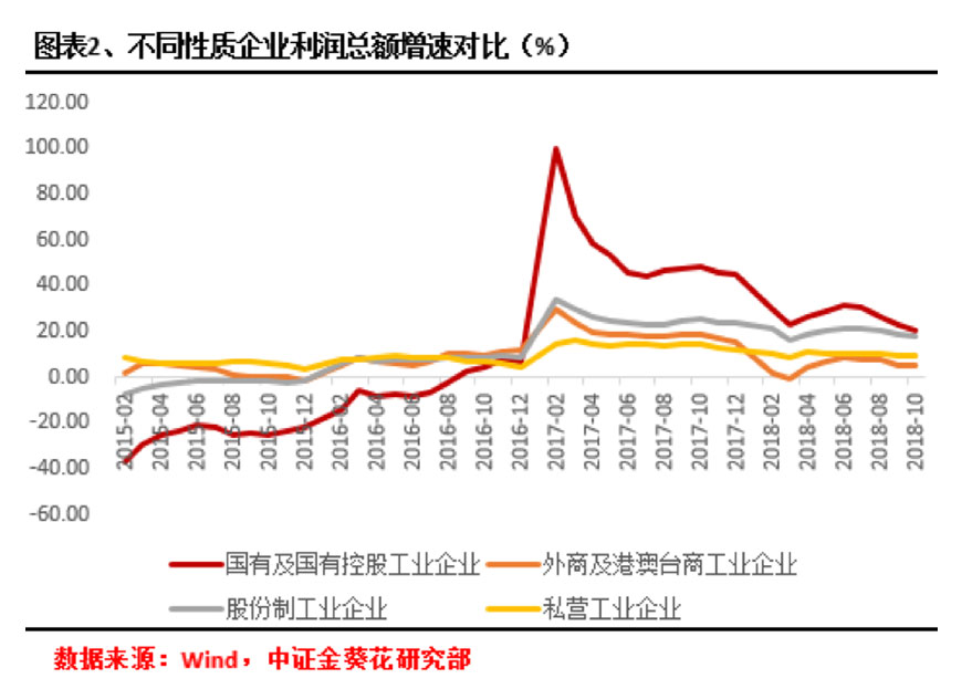 从企业性质来看,国有企业利润增速继续下滑,与民企利润增速差距进一步缩小。10月新增利润主要来源于钢铁石油等传统行业,而该行业大部分企业属于国企,因此国企利润增速绝对数上仍最高,但与此同时国企利润增速下滑也最快,与民企和股份制企业利润增速进一步趋近。今年一季度末国企与私企利润增速差距为14.3%,10月两者之差已经缩小至11.3%。