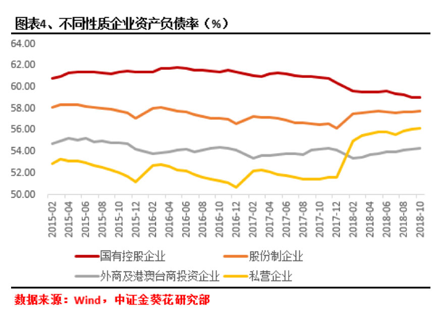 因此,工业企业资产负债率的下降主要得益于供给侧改革对国企产生较大影响。2015-2017年期间对产能过剩行业进行出清,并清除僵尸企业,减少废旧产能,主要对象就是处于上游行业的钢铁、建材以及采矿业等企业,而这些产能过剩行业基本被国企所垄断,因此这期间的供给侧改革对于国企影响较大,并企业杠杆率产生较大冲击,从而出现国有控股企业杠杆率出现快速下降的趋势。