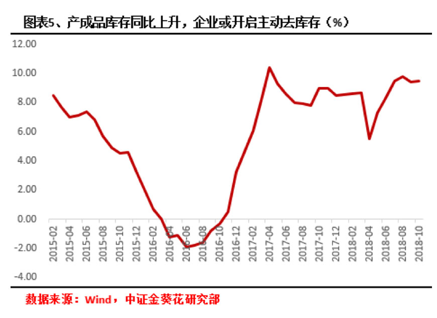 另一方面,我们看到10月企业产成品存货同比增速9.5%,比9月上升0.1个百分点,目前终端需求相对较弱,加上大宗商品价格近来出现较大下跌,尤其原有价格出现大幅下降,工业企业利润空间下降,而我们判断可能工业企业开始主动去库存。