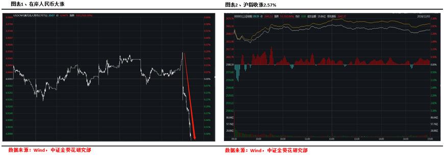 首先在岸人民币开盘后大涨188个基点,突破6.9300关口,并在一天之内连续突破6.9200、6.9100、6.9000几个重要关口,截止收稿前(12月3日15:13),在岸人民币报价6.8910。