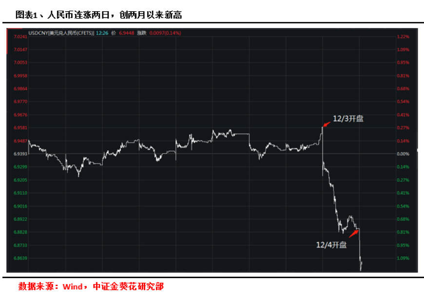 离岸人民币也表现强势,12月3日、4日两日,累计涨幅达1.33%,收复6.85重要关口。