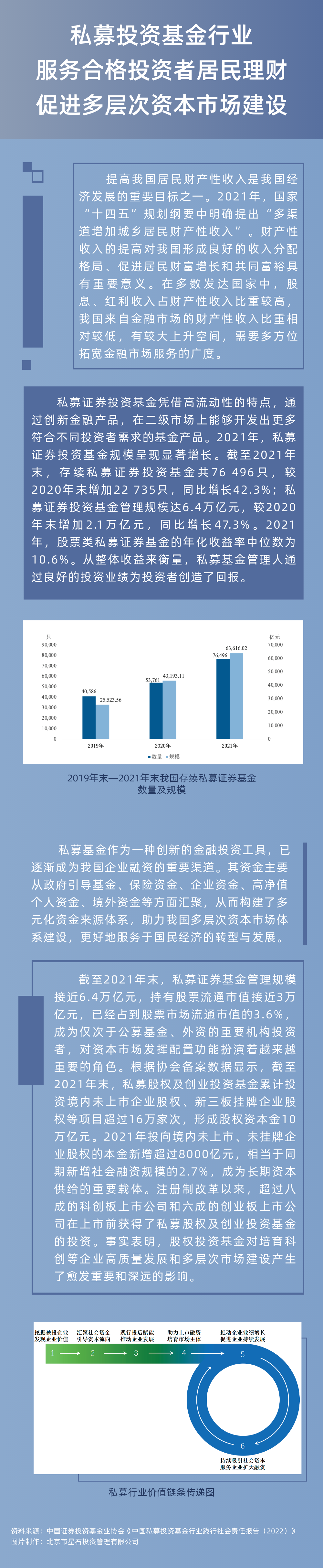 中国证券投资基金业协会近期完成的《中国私募投资基金行业践行社会责任报告(2022)》显示,私募投资基金行业积极践行社会责任的氛围正在形成,越来越多的行业机构主动担当积极作为,在服务居民理财、优化资本市场资源配置、服务科技创新与实体经济发展等方面的功能作用正在日益凸显。