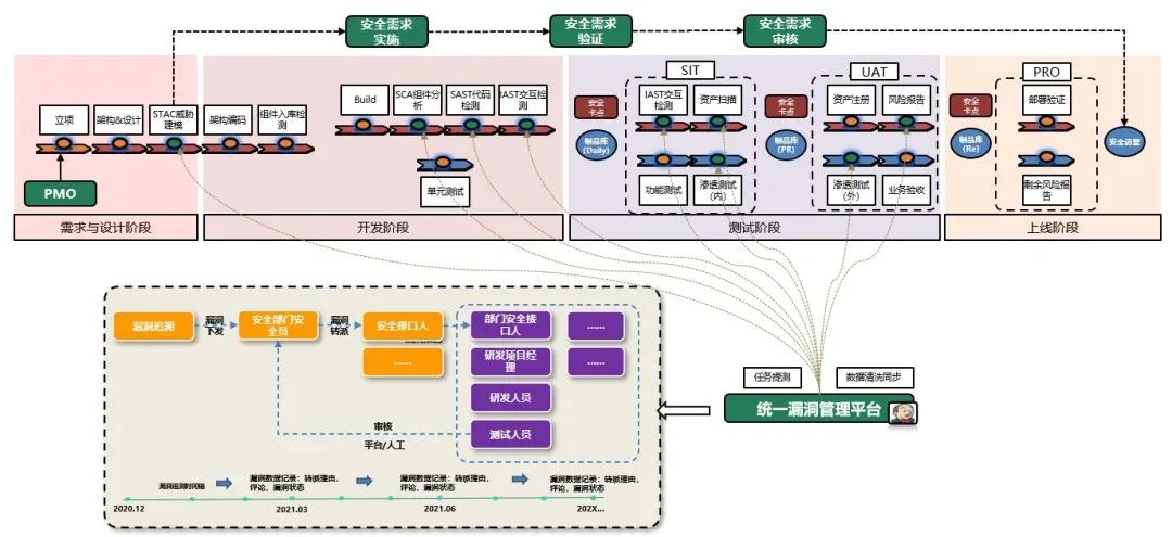 ● 流程卡点:针对标准中对应用开发的管理要求,依托集团OA系统,全面实现安全需求分析、安全架构评估、安全测试和上线安全测评各环节的流程审批系统化,支撑标准中管理要求的落地。