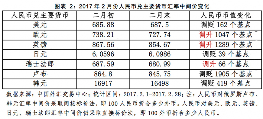 分析:央行加强资本项目管制,打破了外汇市场供求失衡局面,在扭转人民币兑美元单边贬值预期之时,更稳定了市场情绪。2月份,人民币兑美元汇率趋于稳定,未来汇率运行将逐步回归基本面。