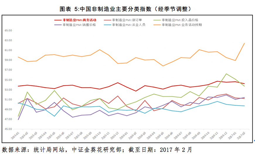 2.2、非制造业保持较快增长态势,业务活动预期指数回升3.5个百分点