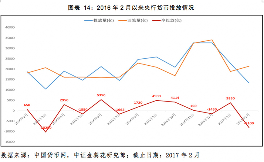 分析:2月央行货币净回笼8100亿元,上调逆回购操作利率,这在很大程度上显示了货币政策相对主动收紧的迹象。
