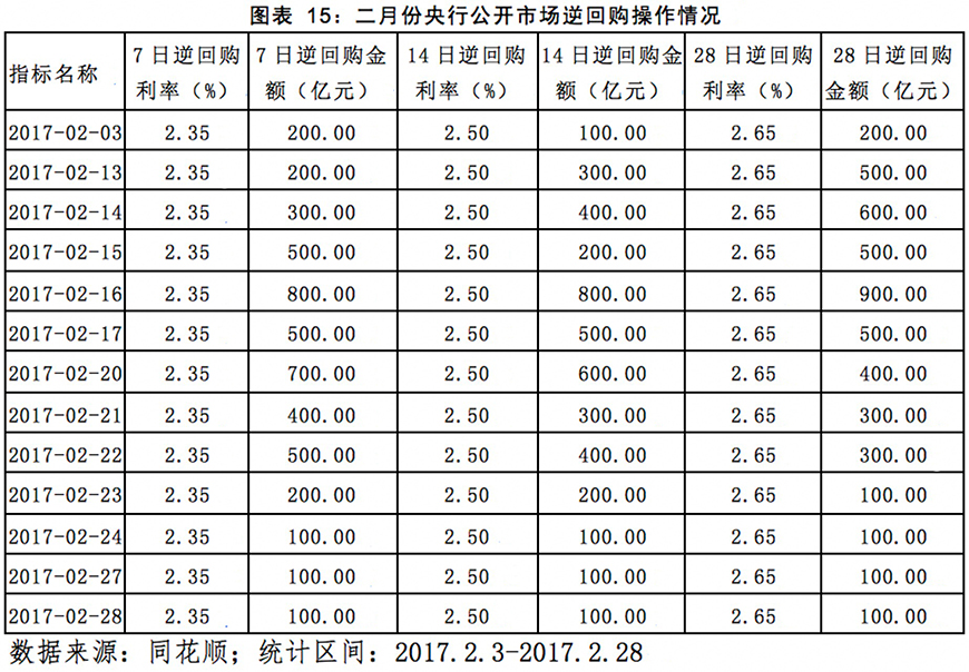 2月份,央行继续通过公开市场操作调控市场流动性,一方面通过运用7天、14天与28天逆回购品种调控短期市场流动性,另一方面通过中期借贷便利与常备借贷便利对各银行进行精准调控。但是央行在2月份先后上调了逆回购、中期借贷便利与常备借贷便利操作利率,以引导市场预期与行为。