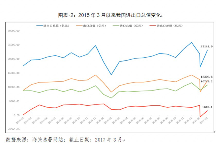 总的看,1季度我国进出口延续了2016年下半年以来的回稳向好走势,连续三个季度进出口总值实现同比增长。