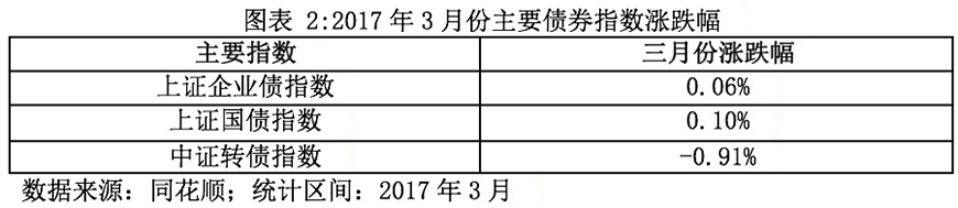 2、债券市场:3月末,央行暂停公开市场逆回购操作,市场流动性收紧,资金价格月末出现翘尾上涨,但是并没有对债券市场形成较大扰动。截止3月31日,上证企债指数涨0.06%,上证国债指数涨0.10%,中证转债指数下跌-0.91%。