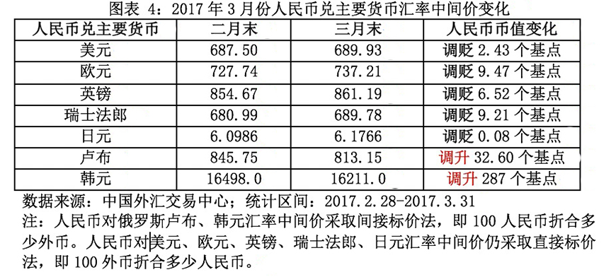 3月份,美联储加息不如预期,美元指数率先做出反应,一度下探至99.24,之后震荡向上,重新站上100整数位关口。人民币三月份即出现升值,也出现贬值。从实际运行来看,人民币兑美元汇率整体区域平稳。