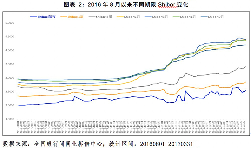 截至3月31日,隔夜利率为2.5384%,1周Shibor为2.8500,2周Shibor为3.4050,1月Shibor为4.3501%,3月Shibor为4.393%,6月Shibor为4.35%,9月Shibor为4.195%,1年Shibor为4.20%。