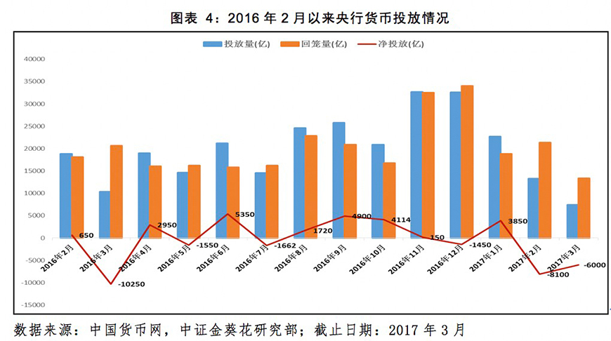 分析:3月央行货币净回笼6000亿元,又进一步上调逆回购操作利率,维持市场流动性与资金价格稳定,最终目标是收紧货币政策,金融去杠杆,防范系统性金融风险。