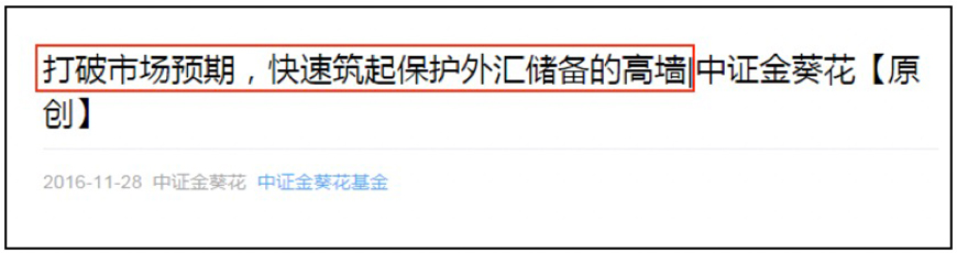 进入2016年11月底,在国内外疯狂预期引导下,人民币兑美元有贬值预期失控的险情。此时,作为一名北漂和85后,笔者却心急如焚,11月27日下午,紧急写了一篇文章“打破市场预期,快速筑起保护外汇储备的高墙”,文章于11月28日发送在中证金葵花基金的微信公众号上。