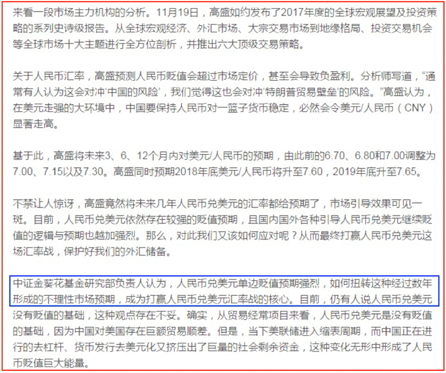 高盛预测在2017年,人民币兑美元将继续贬值,汇率位置陆续看到7.00、7.15以及7.30。如今2017年已经过去大半,我们不妨复盘一下。