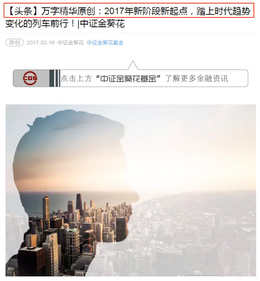 2017年2月18日,中证金葵花发布了2017年投资策略报告“2017年新阶段新起点,踏上时代趋势变化的列车前行!”。