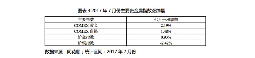 分析:7月份,美联储暗示9月将进行资产缩表,美元指数加速下跌。此外,特朗普政府核心政策屡次受阻,政治风险上升,避险情绪上涨,支撑黄金、白银价格上涨,推动贵金属配置价值。