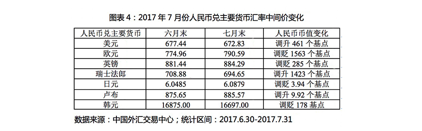 7月份,全国金融会议定调防范发生系统风险,“防风险”、“去杠杆”成未来金融工作主基调。中国宏观经济方面,上半年GDP同比增长6.9%,6月录得进出口顺差2943亿元,全国居民固定投资大幅上涨。人民币7月份保持快速上涨趋势。