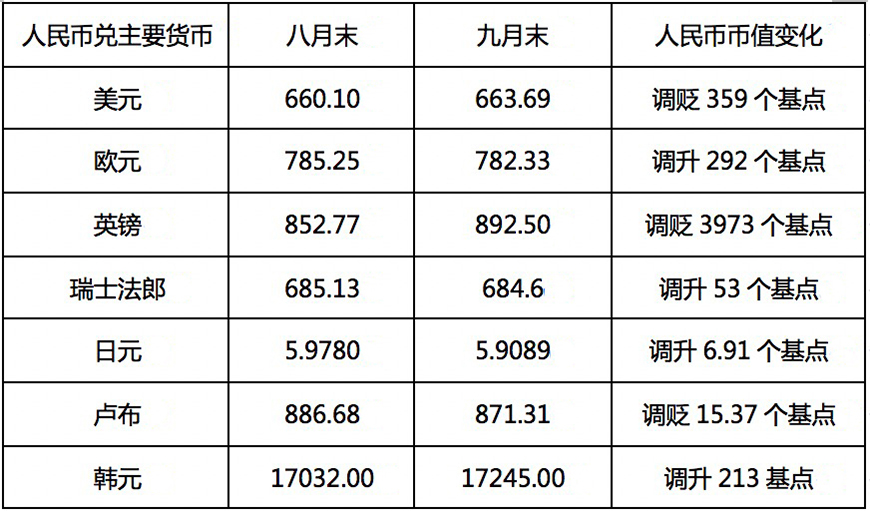 图表4:2017年9月份人民币兑主要货币汇率中间价变化