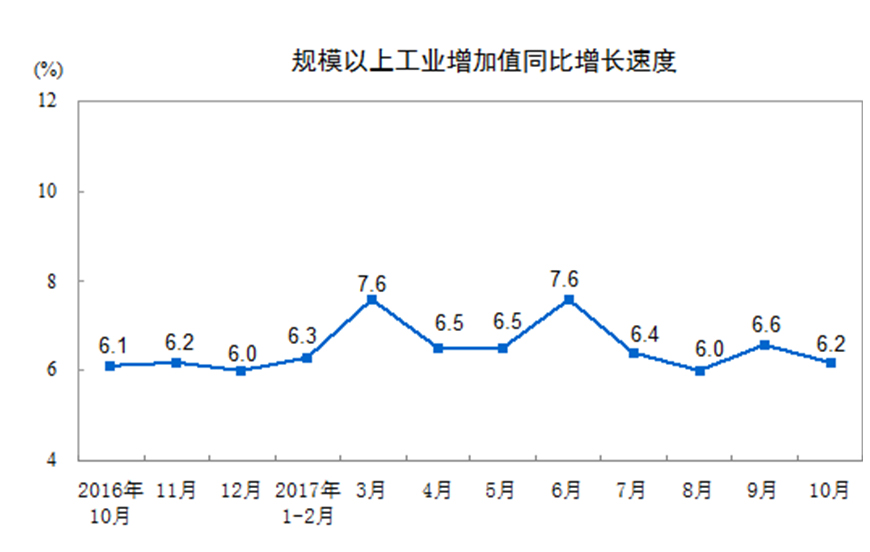 六、10月份规模以上工业增加值同比增长6.2%,四季度将延续平稳增长