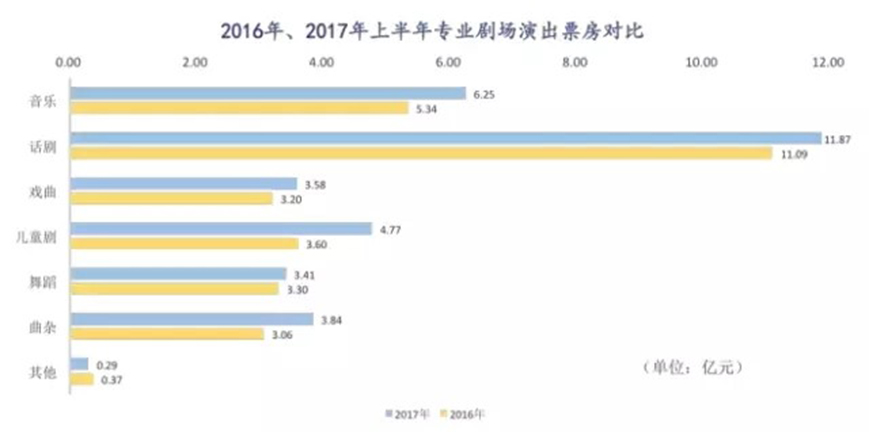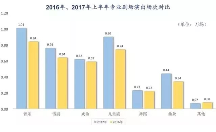近日,文化部艺术发展中心发布了《2017年上半年演出市场发展报告》。报告显示,2017年上半年专业剧场演出总场次突破4万场,音乐节市场持续升温,演出市场票房收入呈现出逆势增长的趋势。同时,数据背后也反映出未来演出市场的提升空间。
