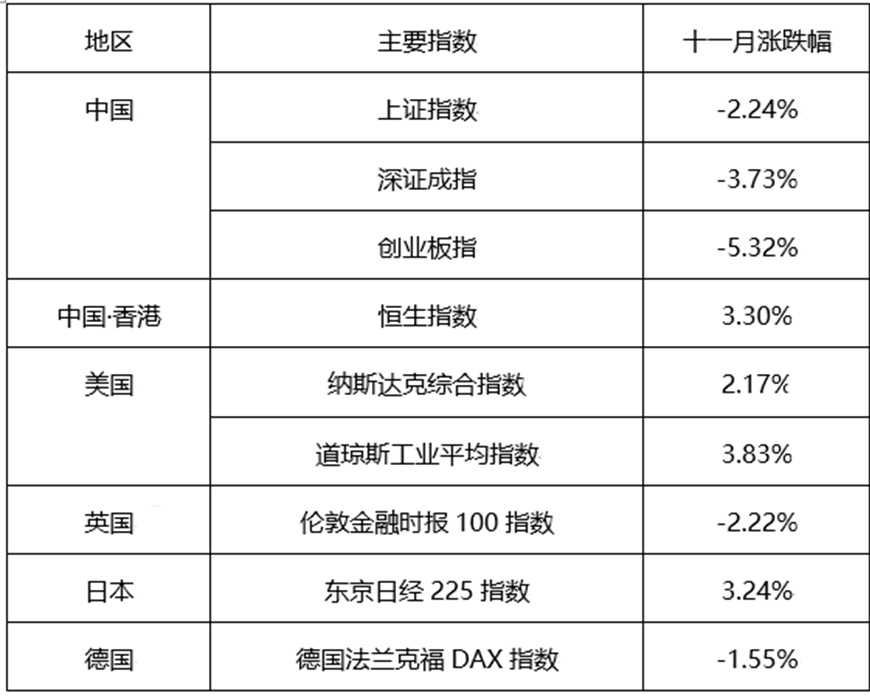 一、股市: 白马股+次新股领跌,A股11月整体走弱