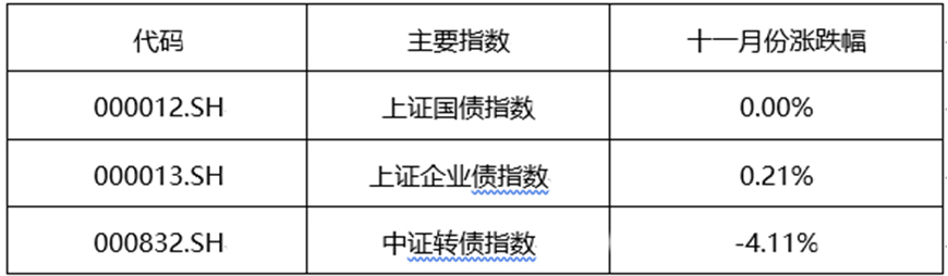 二、债券市场: 11月国债涨幅0%收官,信用债表现不尽人意