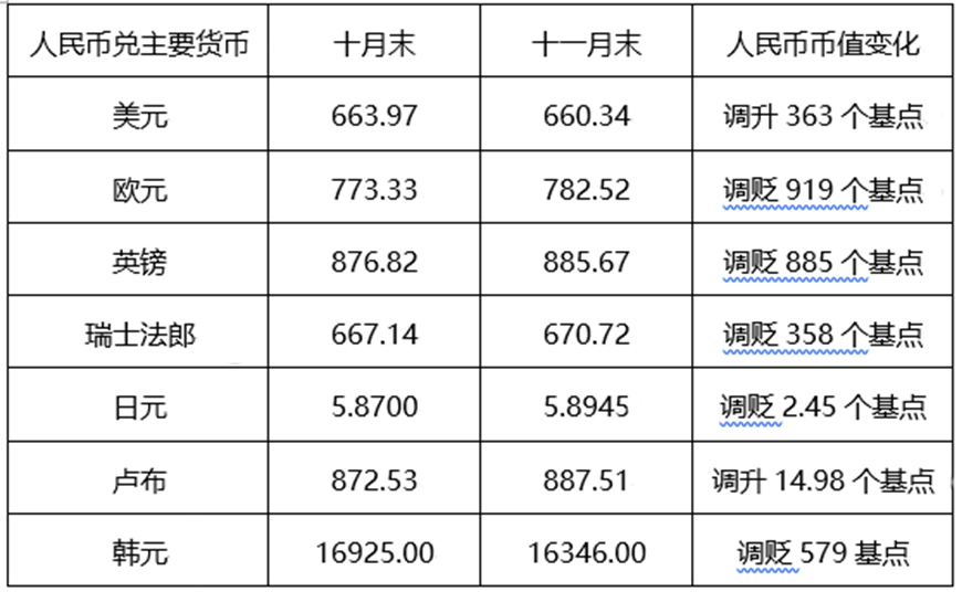 图表4:2017年11月份人民币兑主要货币汇率中间价变化