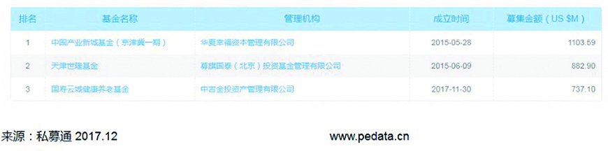 在11月份新募集基金中,募资规模排名前三的基金分别为嘉兴华夏幸福叁号投资合伙企业(有限合伙)、天津世隆企业管理咨询合伙企业(有限合伙)和国寿云城(嘉兴)健康养老产业投资基金(有限合伙)。