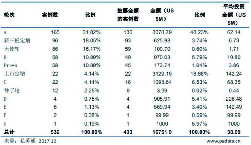 图表 6:2017年11月中国VC/PE市场投资轮次