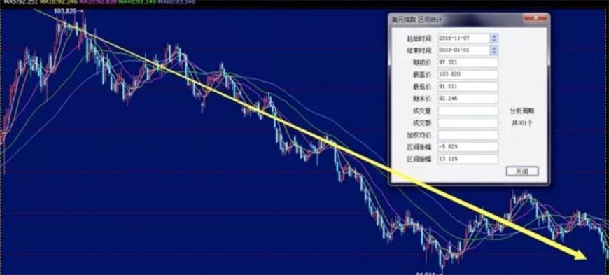 反常的是,期间美联储每加一次利息,反而进一步加重了美元指数的下跌。截至2018年1月1日,美元指数从2017年初的102位置,一路趋势下挫至了92附近。