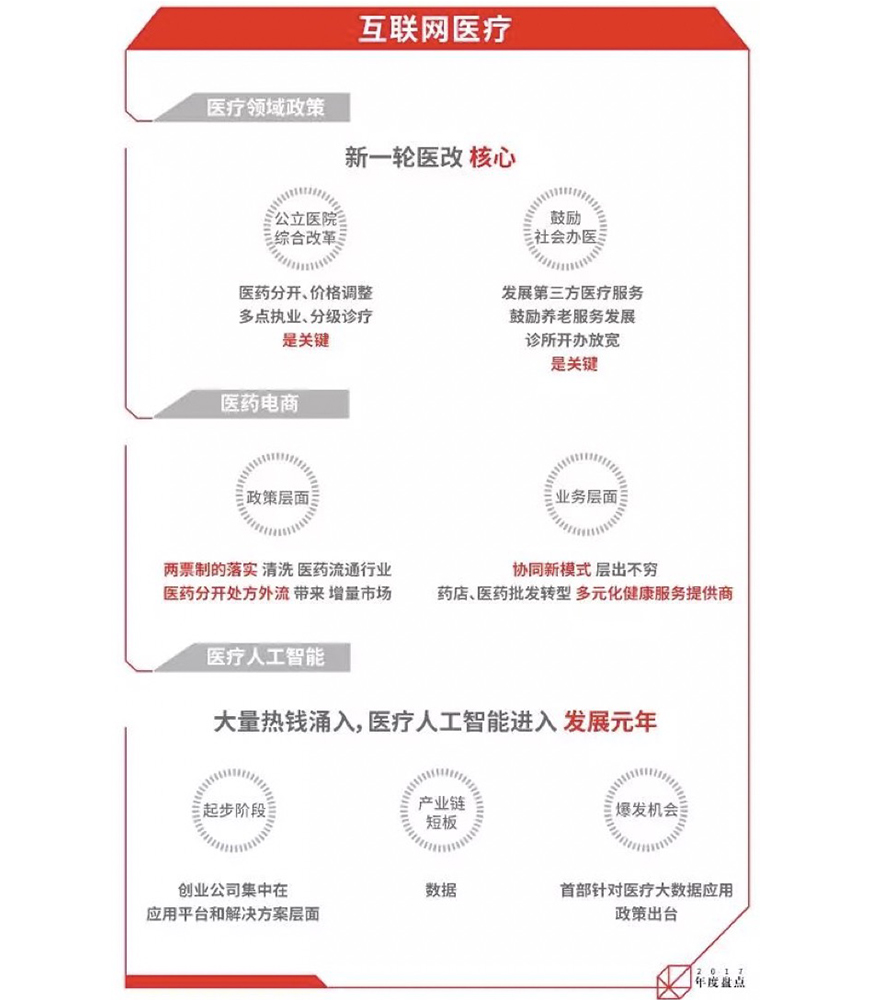 医疗服务的平台属性越来越明晰,高效运营和管理将成为医疗服务机构的核心价值。而数据和服务的结合,特别是人工智能+医疗迈向了新高峰,尤其影像领域。基层医疗崛起。全科和专科诊所走向了中产阶级和普罗大众, 顺应国家医改,引流解脱不堪重负的三甲医院。第三方服务也值得关注。卫计委共批准10类独立设置医疗机构。资本出手了第三方肿瘤病理、影像中心和肾透析等企业。但更多资本尚在观望中。