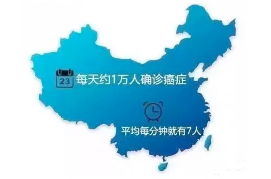 中国国家癌症中心2017年2月发布的中国最新癌症数据显示,2013年,全国新发恶性肿瘤病例约368.2万例,与2012年相比,癌症新发人数继续上升,从358万增加到368万,增幅3%。平均每天约有1万人确诊癌症,每分钟约7人确诊患癌。