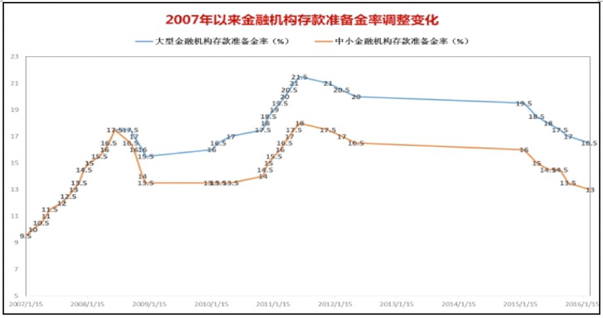 图表 7:2007年以来金融机构存款准备金率调整变化