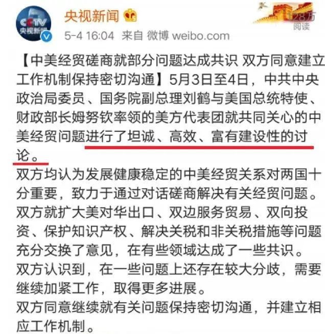 在5月4日中方发布的关于谈判的“通稿”中,我们会发现那看似“波澜不惊”的文字背后,尤其是那句“坦诚、高效、富有建设性的讨论”描述背后,隐藏着激烈的碰撞了。就像《环球时报》社评所透露的那样——“据接近谈判的人士透露说,在3日和4日的对话中,中方代表团对来自美方的莫须有指责进行了强力回击,始终站在维护自由贸易和多边贸易体制的道义制高点上,态度坚定不移。”